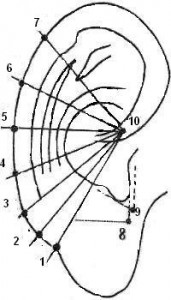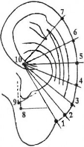 Ушная раковина тесно связана с висцеральными органами, является важной сенсорной зоной , при раздражении которой возникает мощный поток афферентной импульсации, направленный к мозгу. Этот поток проходит в мозг на уровне его стволовых образований, где расположены ядра черепных нервов, тесно связанных с регуляцией внутренних органов и внутренней среды организма ( 9 и 10 пара)
