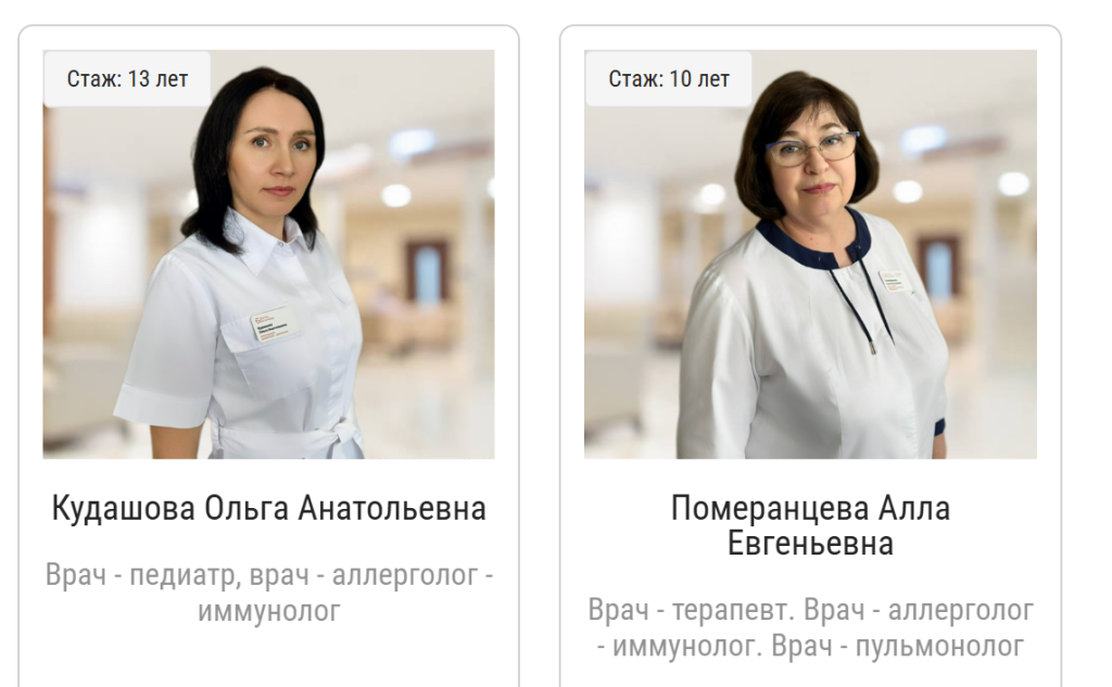 Отделение аллергологии и иммунологии медицинского центра «Доктор Боголюбов» работает в 2 филиалах в Балашихе: «Звездная» и «Акварели». Прием ведут врачи-аллергологи Померанцева Алла Евгеньевна, Кудашова Ольга Анатольевна, которые успешно борятся с проявлениями аллергии. Для этого в своей практике доктора активно используют такой метод как АСИТ. (аллергенспецифическая иммунотерапия)