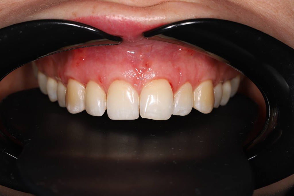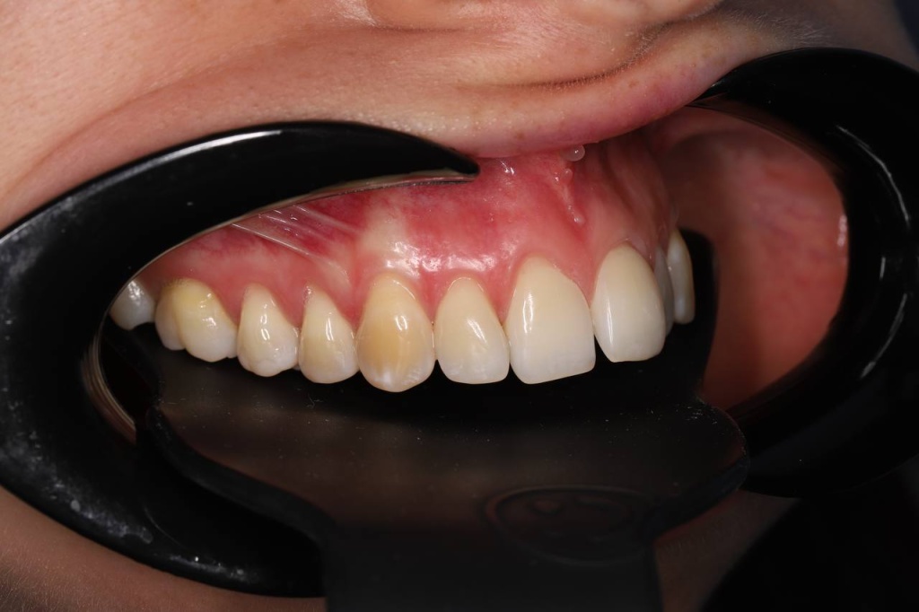 Рецессия десны представляет собой процесс уменьшения объема мягких тканей вокруг зуба или имплантата, что ведет к обнажению шейки имплантата и ухудшению эстетики улыбки.