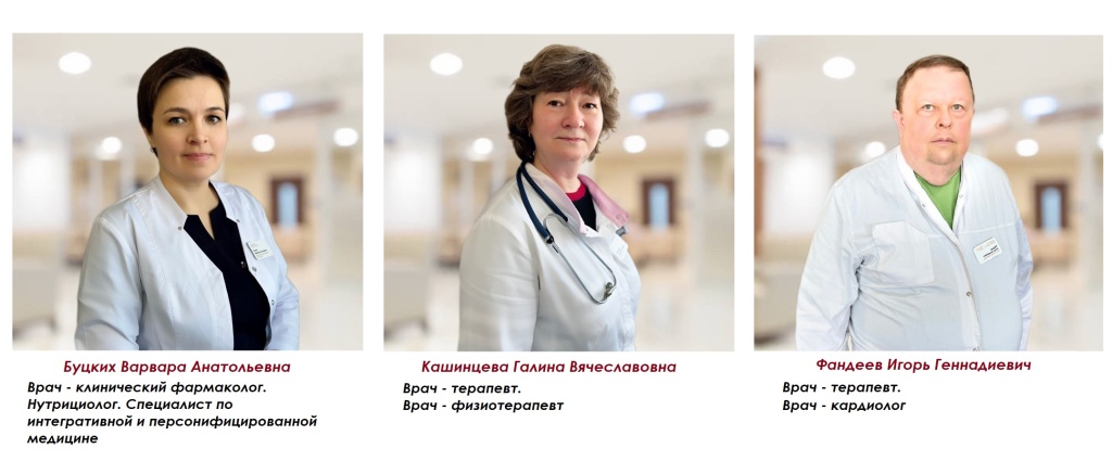 Все начинается с приема. Наши врачи-терапевты Кашинцева Галина Вячеславовна, Фандеев Игорь Геннадиевич, врач-нутрициолог Буцких Варвара Анатольевна на приеме назначают обследование пациента, включающее лабораторные анализы и ЭКГ.