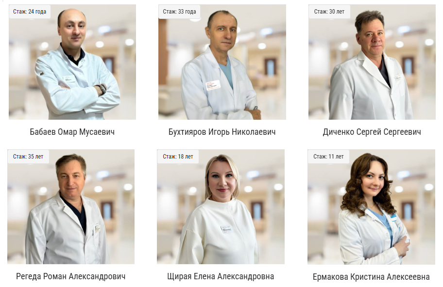 Все начинается с консультации. Прием ведут наши специалисты — врачи-колопроктологи, хирурги: Диченко Сергей Сергеевич, Щирая Елена Александровна, Ермакова Кристина Алексеевна, Регеда Роман Александрович, Бухтияров Игорь Николаевич, и главный врач, колопроктолог-хирург Бабаев Омар Мусаевич.