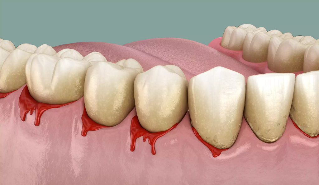 - Незначительное кровотечение при чистке зубов или употреблении твердой пищи;