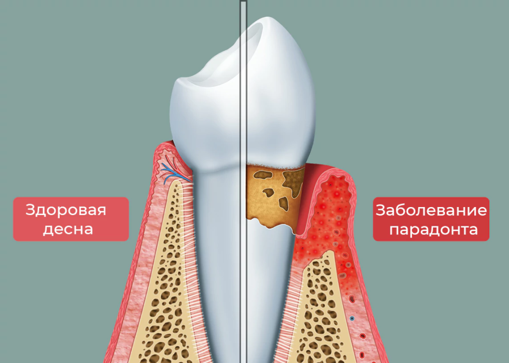 При заболеваниях пародонта в этот период жизни наблюдается развитие патологических процессов, приводящих к потере опорных структур зуба — дентальной кости и соединительной ткани.