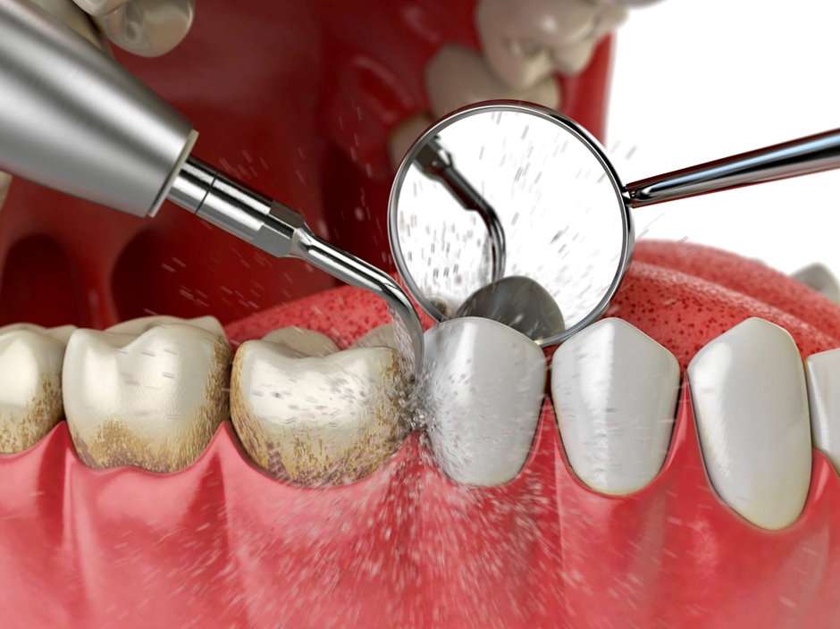 - Удаление зубного камня ультразвуком: С помощью специального аппарата (скейлера) врач аккуратно удаляет твердые зубные отложения (зубной камень) с поверхности зубов и из поддесневых карманов.