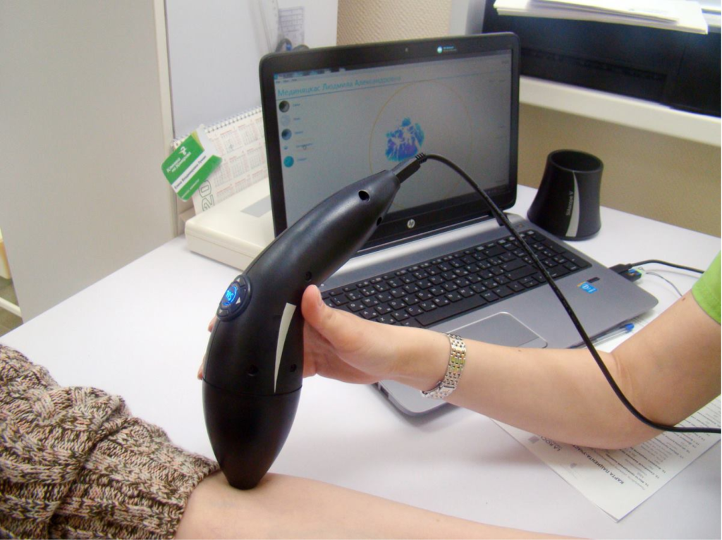 - Проведение исследования: Врач прикладывает сиаскоп к коже. Прибор излучает световые волны различных длин, которые проникают в кожу и отражаются от ее структур.