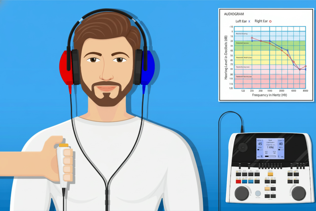 Первым шагом на пути восстановления слуховых функций является прохождение специального обследования — аудиометрии. Это диагностический метод, направленный на выявление уровня снижения слуха путём измерения реакции человека на определённые звуки разной частоты и интенсивности.Во время проведения данной процедуры пациент слышит сигналы разного диапазона частот, подаваемые специалистом через специальные наушники или костные вибраторы. Получив результаты исследования, врач формирует индивидуализированную картину нарушений слуха, называемую аудиограммой. Аудиограмма отображает уровни чувствительности слуха к разным звуковым сигналам и служит основой для дальнейшего подбора корректирующего оборудования.