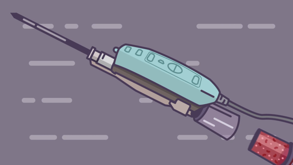 Затем, используя ультразвуковую навигацию, хирург вводит тонкую иглу в область образования через микропрокол. Аппарат создает вакуум, благодаря которому ткань втягивается внутрь иглы. После завершения процедуры пациентка может сразу вернуться домой.