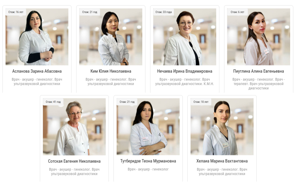 Приём и консультации ведут опытные врачи‑гинекологи: